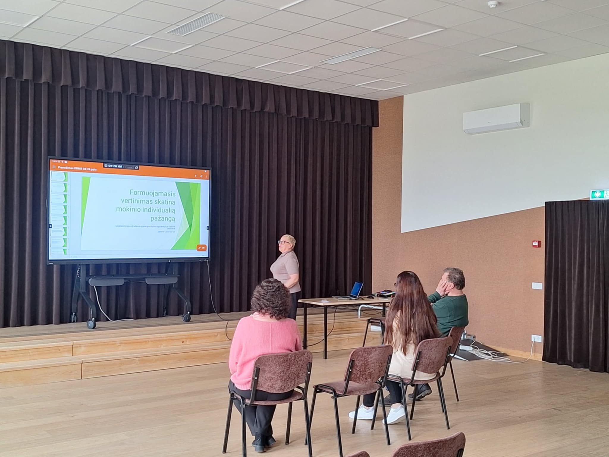 Ignalinos Česlovo Kudabos gimnazijos tikybos mokytoja Audronė Urbonienė skaitė pranešimą „Formuojamasis vertinimas skatina mokinio individualią pažangą“. Ji aptarė vertinimo ir grįžtamojo ryšio svarbą ugdymo procese. Mokytoja akcentavo, kad labai svarbu skatinti mokinius prisiimti atsakomybę už savo mokymąsi ir teigė nuolat matanti, kokia svarbi vaikui yra tarpusavio (mokinys-mokiniui) pagalba.